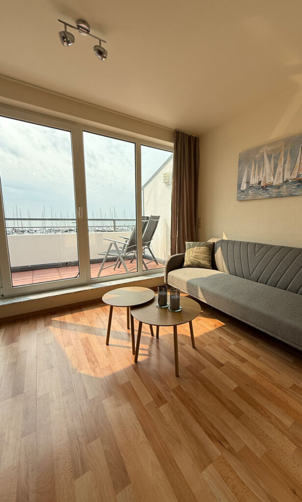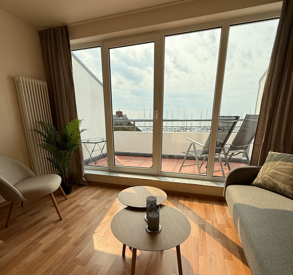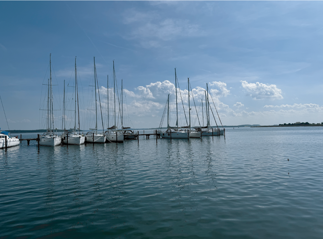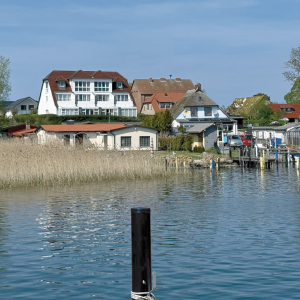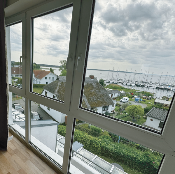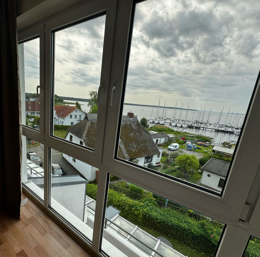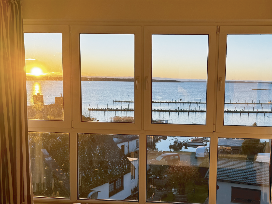 Ob beim Frühstück mit Ausblick, Sonnenuntergang auf dem Balkon oder einem Glas Wein auf der Terrasse – der Blick auf den Breeger Bodden mit seinen Segelbooten ist zu jeder Tageszeit ein Highlight.